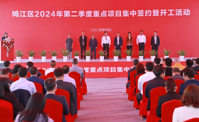 ——4月1日上午,鸠江区2024年第二季度重点项目集中签约暨开工活动在鸠江经济开发区举行。此次参加集中签约项目共31个,总投资299.69亿元,其中10亿元以上7个,50亿元以上2个;参加集中开工项目17个,总投资118.18亿元,项目涵盖汽车整车和核心零部件、人工智能、大数据等多个领域,既有补短板、强链条的产业类项目,又有打基础、惠民生的保障类项目,含金量、含新量、含绿量高,影响力、带动力、牵引力强。