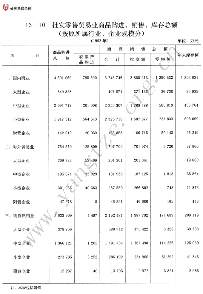 批发零售贸易业商品购进、销售、库存总额(按原所属行业、企业规模分)