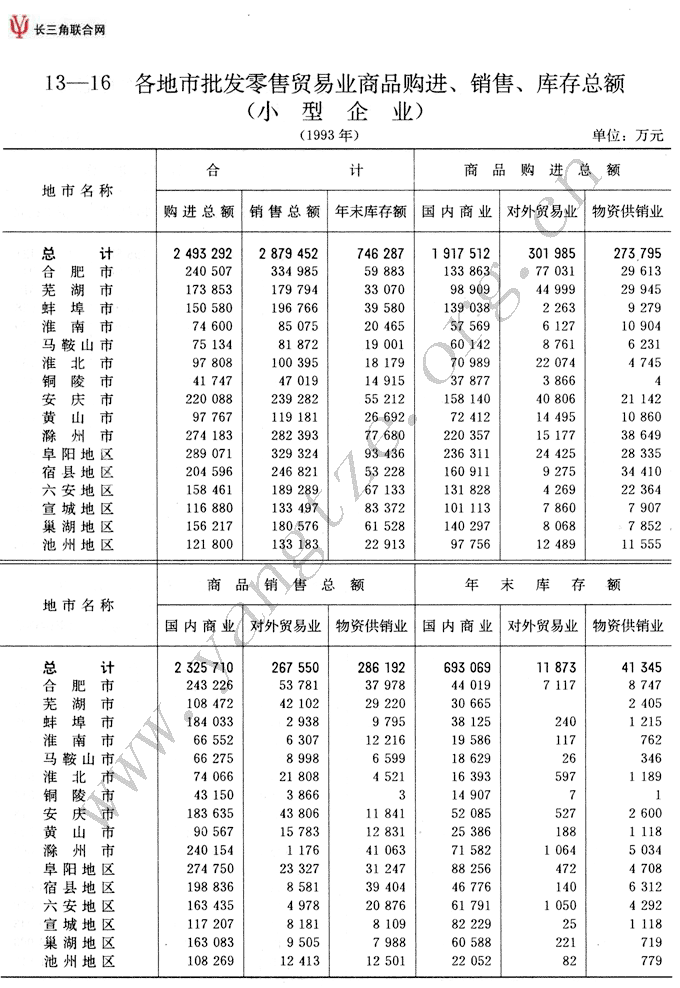 各地市批发零售贸易业商品购进、销售、库存总额(小型企业)