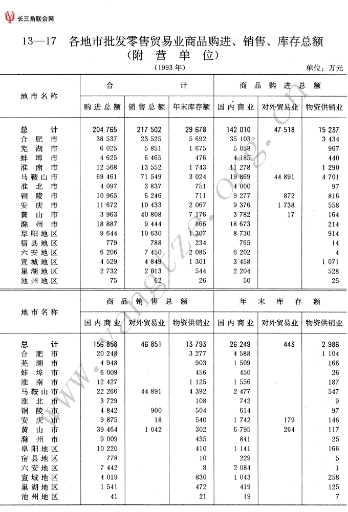 各地市批发零售贸易业商品购进、销售、库存总额(附营单位)
