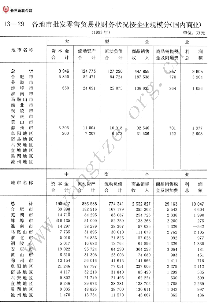 各地市批发零售贸易业财务状况按企业规模分(国内商业)