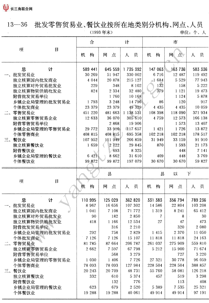 批发零售贸易业、餐饮业按所在地类别分机构、网点、人员