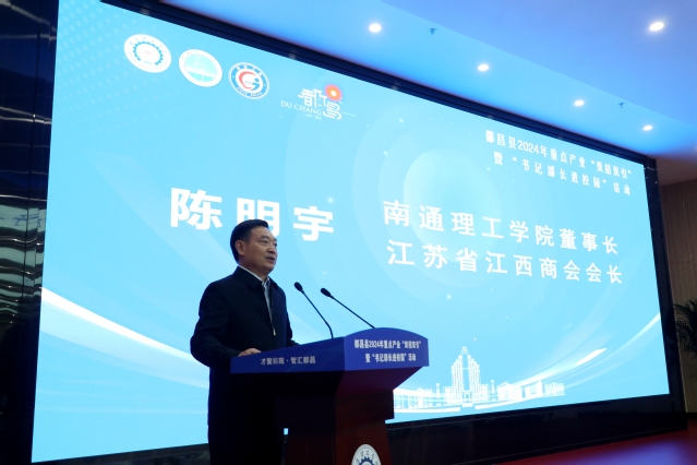 在启动仪式上,陈明宇致欢迎辞。他在致辞中代表南通理工学院和江苏省江西商会,向与会的各位领导、专家和企业家表示欢迎。他表示,作为一个土生土长的都昌人,他成长的每一步都凝聚着家乡人民的期望和厚爱。此次活动不仅是推动都昌县与南通理工学院之间的深度合作,更是把南通理工学院作为都昌在江苏的一个窗口,为都昌在江苏招才引智、科技服务、招商引资搭建一个重要平台。他希望通过与都昌县的紧密合作,为南通理工学院的学生提供更多的就业和创业机会,也为都昌的发展提供更多精准的服务。