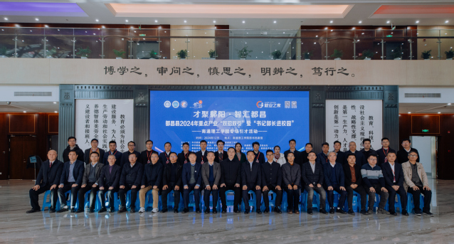 仪式后,在图书档案馆18 楼文博会厅举行江西省都昌县“产才融合”发展座谈会。都昌县领导、相关部门及乡镇领导,我校有关领导,特邀高校代表,特邀企业家代表参加会议。沈承峰主持座谈会。