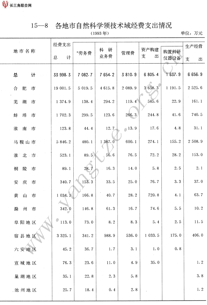 各地市自然科学技术领域经费支出情况