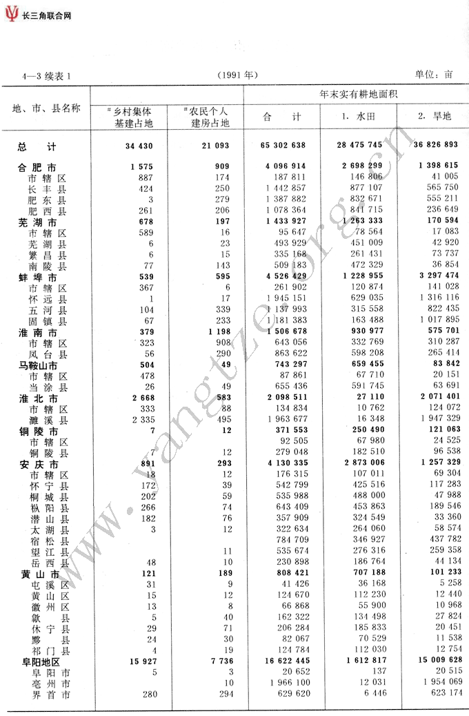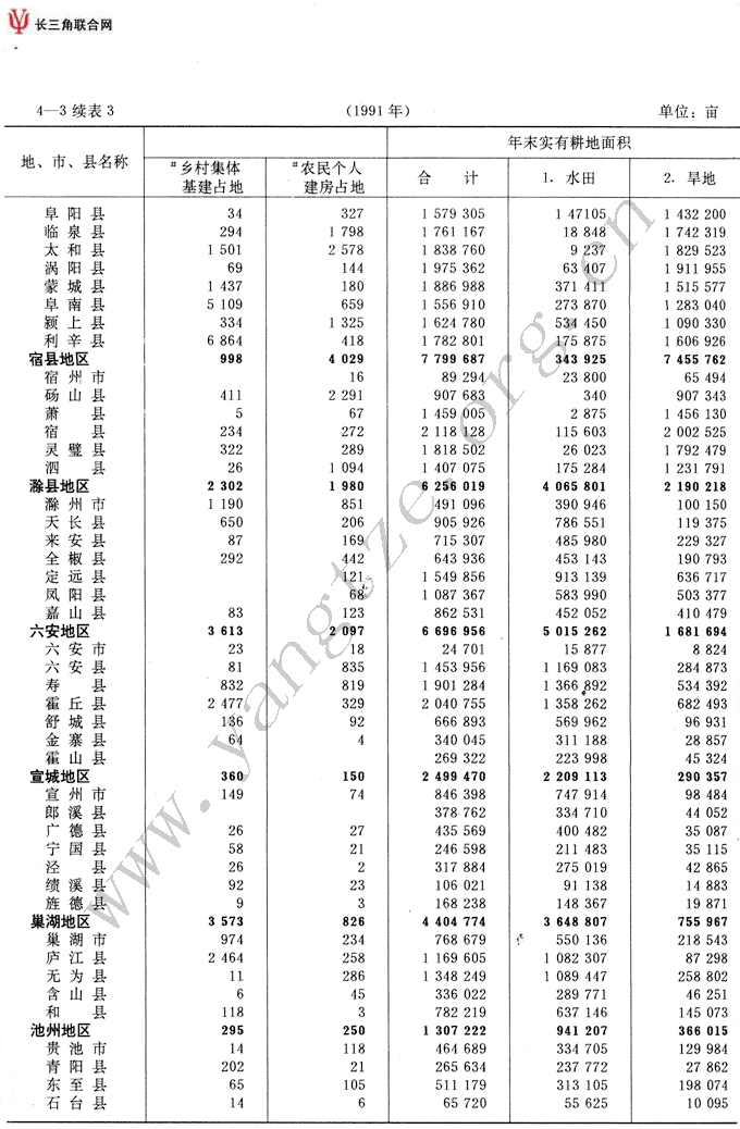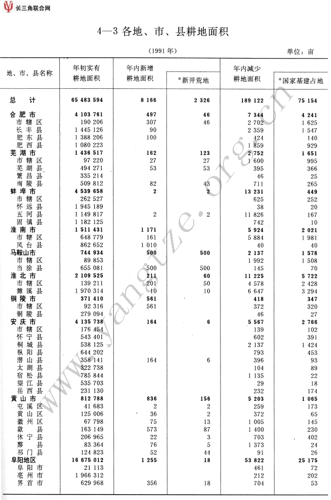 各地、市、县耕地面积