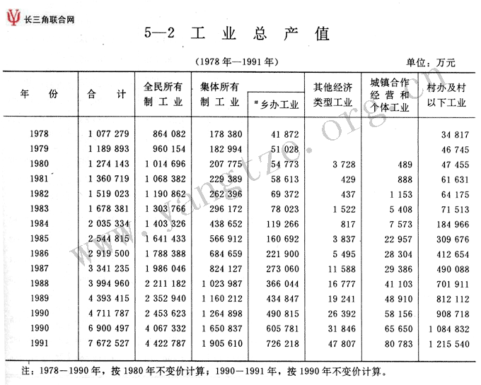 工业总产值(1978年-1991年)