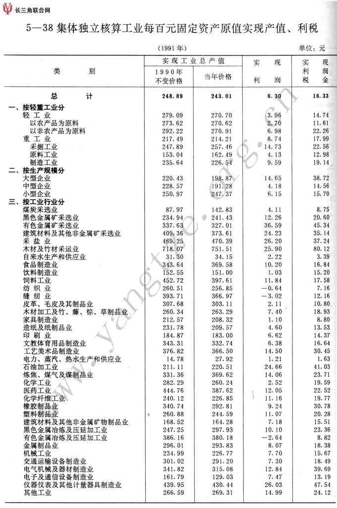集体独立核算工业每百元固定资产原值实现产值、利税
