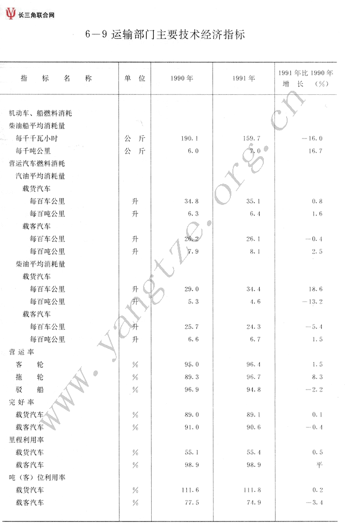 运输部门主要技术经济指标