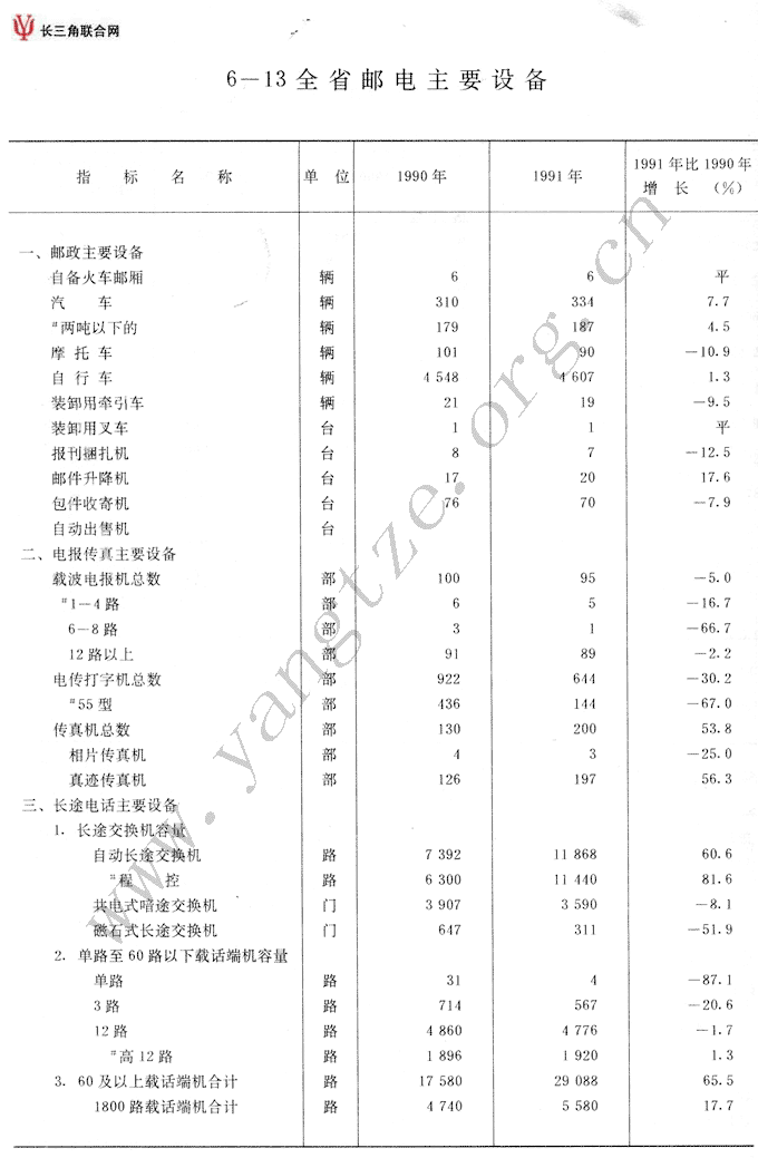 全省邮电主要设备