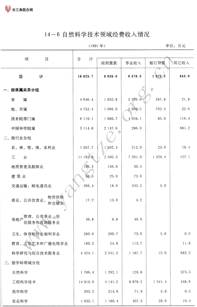自然科学技术领域经费收入情况