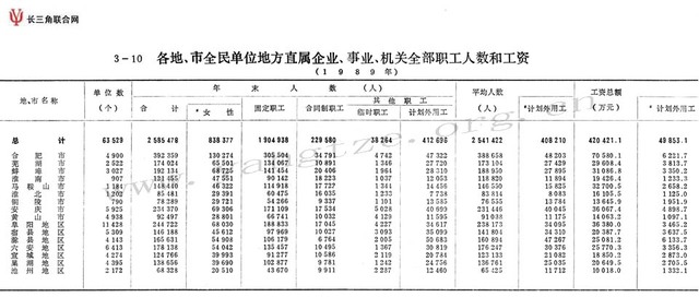 各地、市全民单位地方直属企业、事业、机关全部职工人数和工资