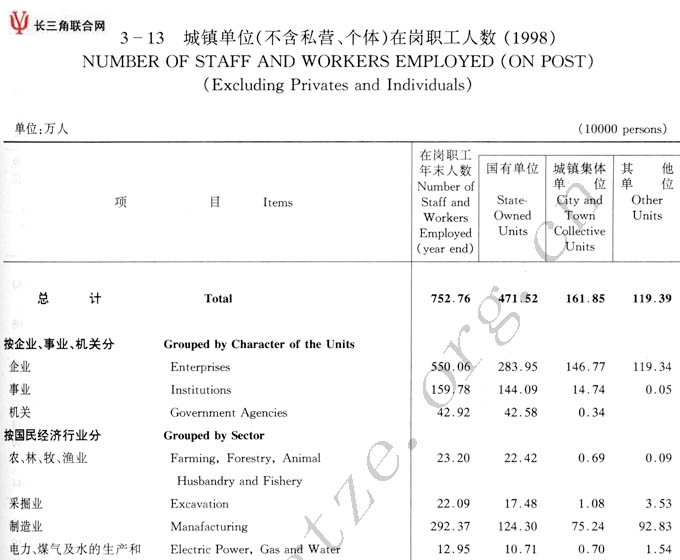 城镇单位(不含私营、个体)在岗职工人数(1998)