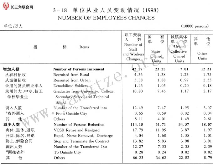 单位从业人员变动情况(1998)
