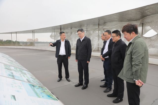 金晓明一行首先来到元荡生态修复及功能提升工程一期项目现场。元荡生态修复及功能提升工程是青浦区的一项重大生态工程,涵盖生态、体育、文化和产业等多个方面,致力于通过生态修复和功能提升,将元荡打造成为上海之门国际枢纽的重要组成部分。金晓明详细听取相关负责人关于工程进展、生态保护措施以及未来发展规划的介绍,对工程所取得的阶段性成果表示肯定并强调,元荡堤防达标和岸线生态修复工程是示范区首个一体化生态建设重点项目,彰显了一体化建设机制优势,是青嘉吴协同合作、积极推进生态环境共创共建的新名片。要持续加大生态修复力度,确保工程高质量推进,努力打造宜业、宜居、宜游之地,让老百姓更可亲近、更宜休憩,充分感受生态之美。