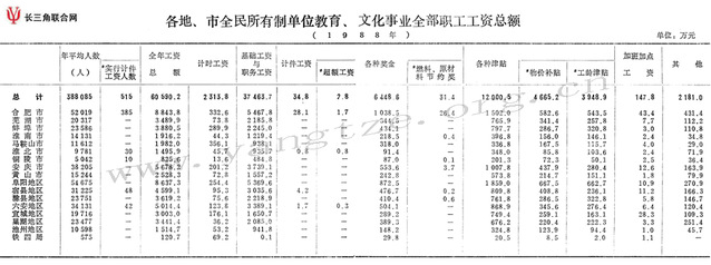 各地、市全民所有制单位教育、文化事业全部职工工资总额