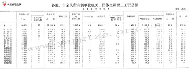 各地、市全民所有制单位机关、团体全部职工工资总额