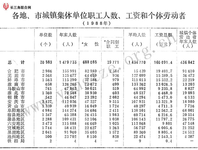 各地、市城镇集体单位职工人数、工资和个体劳动者