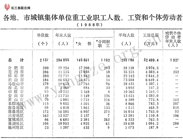 各地、市城镇集体单位重工业职工人数、工资和个体劳动者