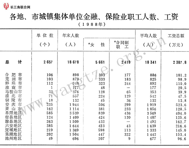 各地、市城镇集体单位金融、保险业职工人数、工资