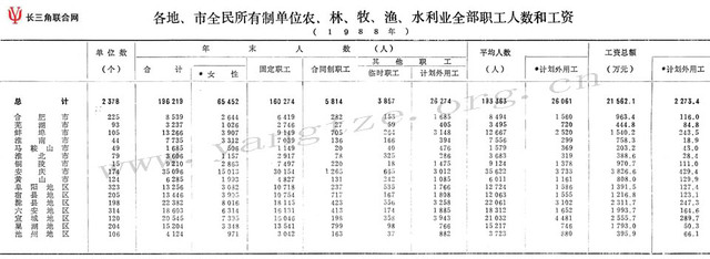 各地、市全民所有制单位农、林、牧、渔、水利业全部职工人数和工资