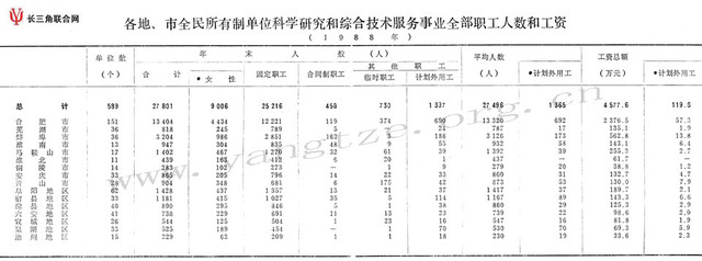 各地、市全民所有制单位科学研究和综合技术服务事业全部职工人数和工资