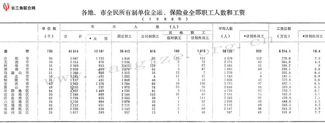 各地、市全民所有制单位金融、保险业全部职工人数和工资