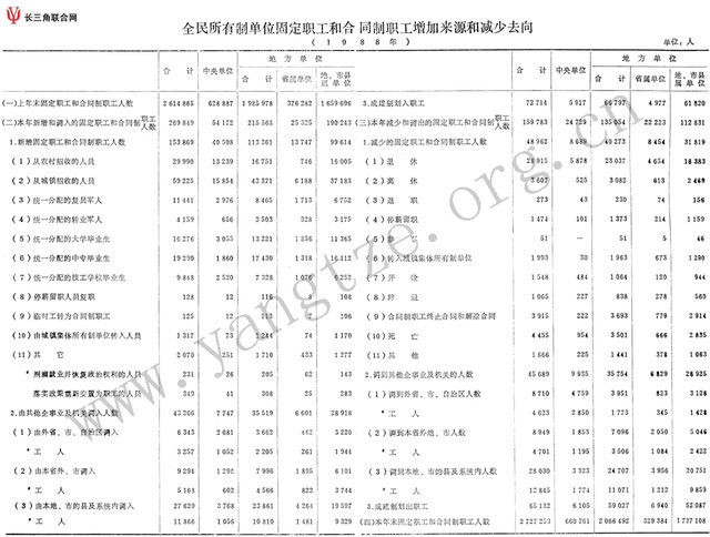 全民所有制单位固定职工和合同制职工增加来源和减少去向