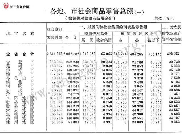 各地、市社会商品零售总额(按销售对象和商品用途分)
