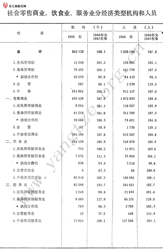 社会零售商业、饮食业、服务业分经济类型机构和人员