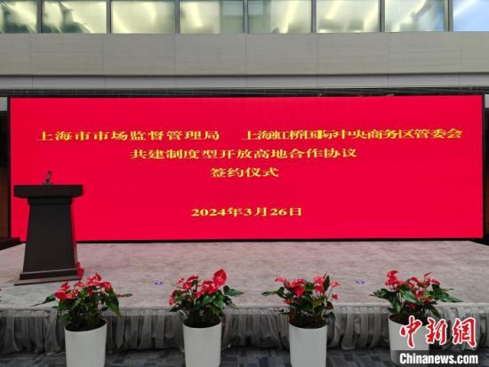 26日,上海市市场监督管理局与虹桥国际中央商务区管委会签订共建制度型开放高地合作协议。 中新网记者 浦帆 摄