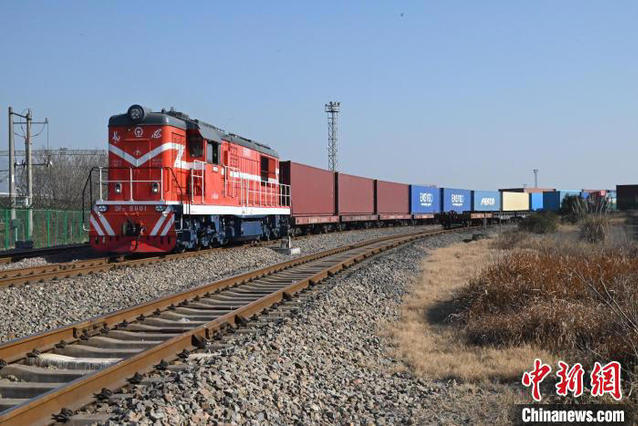中新网杭州1月1日电 记者从中国铁路上海局集团有限公司获悉,1月1日上午10时许,一趟满载110个标箱日用百货、汽车配件、机械设备等出口货物的X8410次中欧班列从铁路义乌西站开出,班列将经二连浩特口岸出境,前往俄罗斯霍夫里诺,这是2025年长三角地区开出的首趟中欧班列。