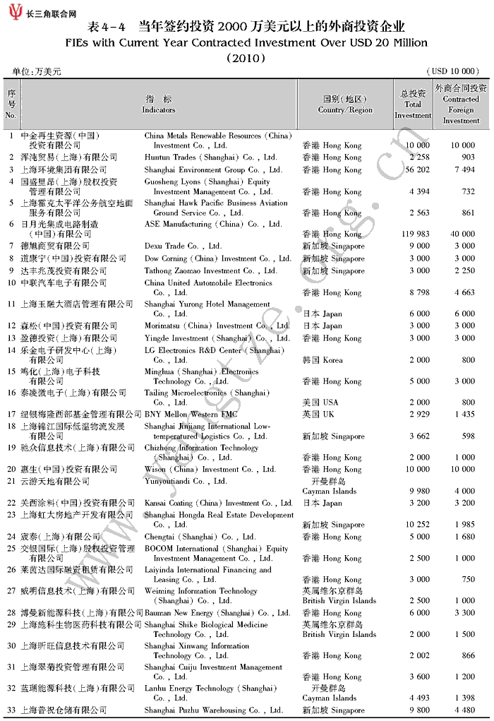 当年签约投资2000万美元以上的外商投资企业(2010)