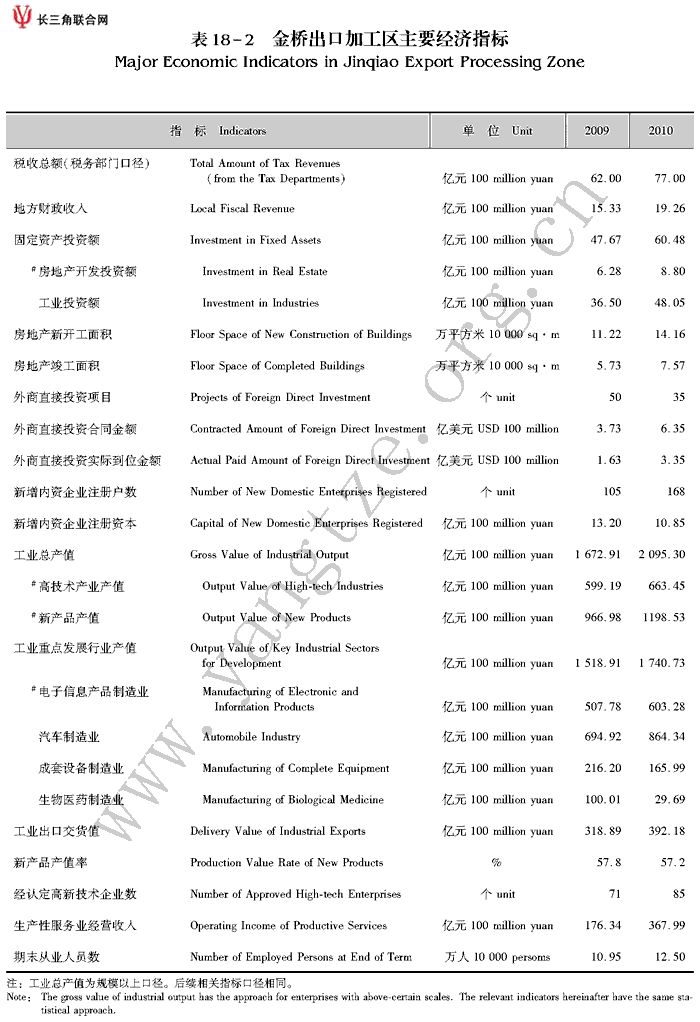 金桥出口加工区主要经济指标