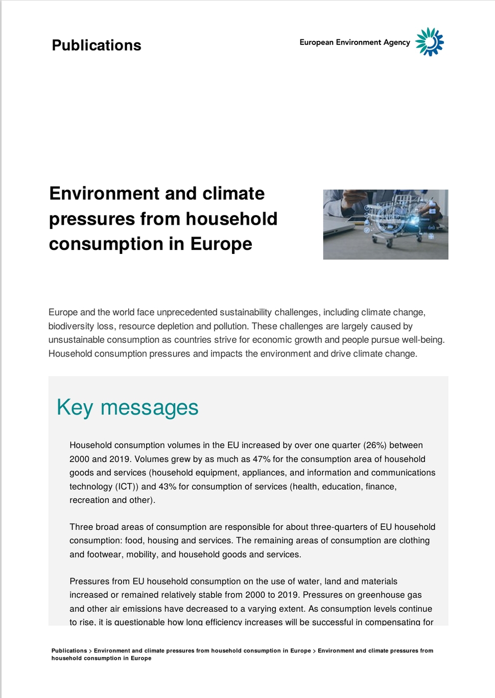 欧洲和世界面临着前所未有的可持续发展挑战,包括气候变化、生物多样性丧失、资源枯竭和污染。这些挑战主要是由于各国努力实现经济增长和人们追求福祉的不可持续消费造成的。家庭消费给环境带来压力和影响,并推动气候变化