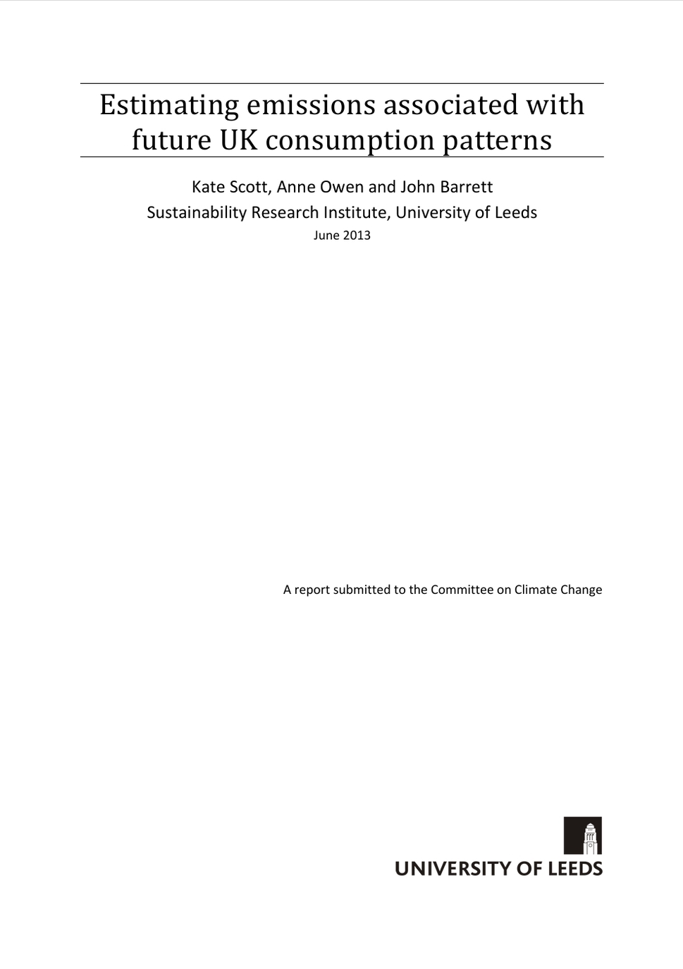 该报告估计了 1993 年至 2010 年间英国过去消费排放量的乘数系列(与生产排放量相比),并进一步估计了各种情景下到 2050 年的消费排放量。