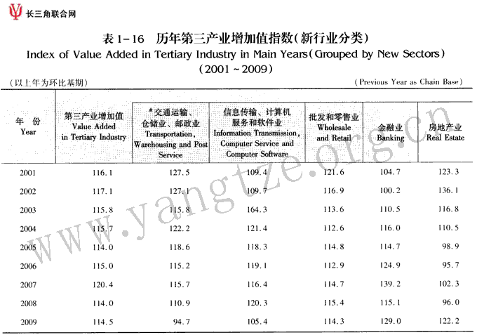历年第三产业增加值指数(新行业分类)(2001-2009)