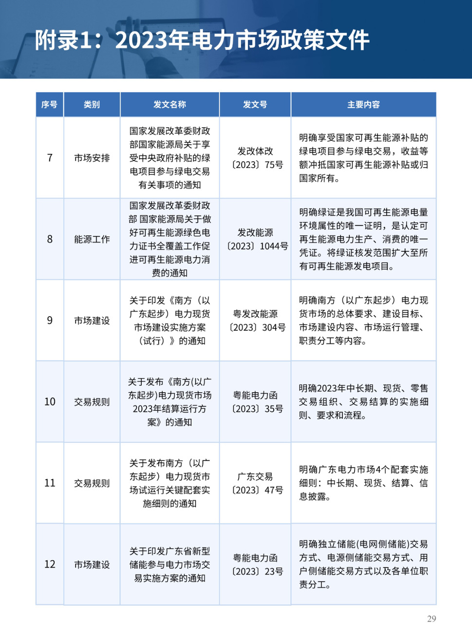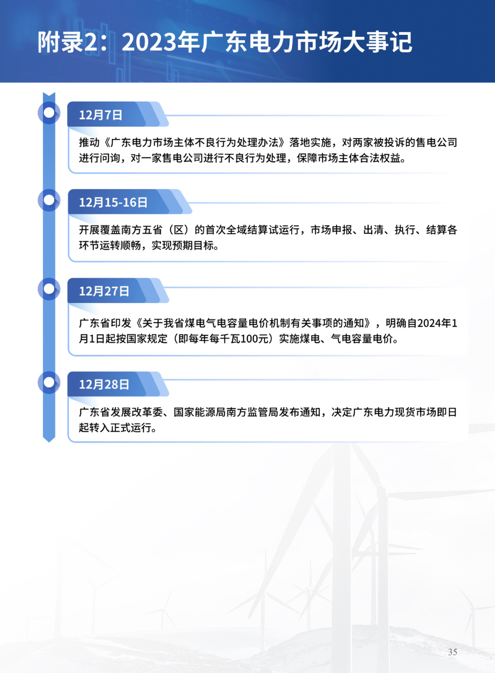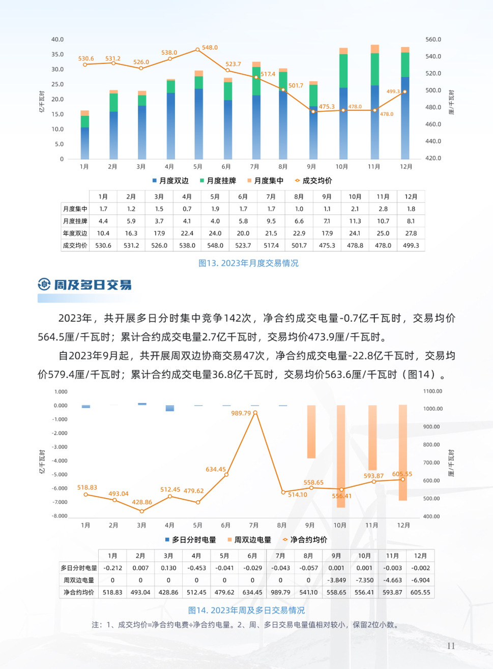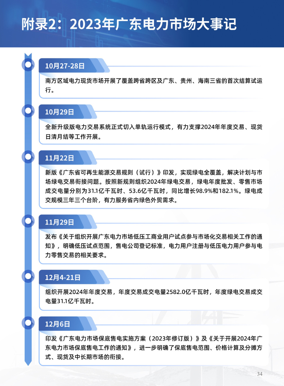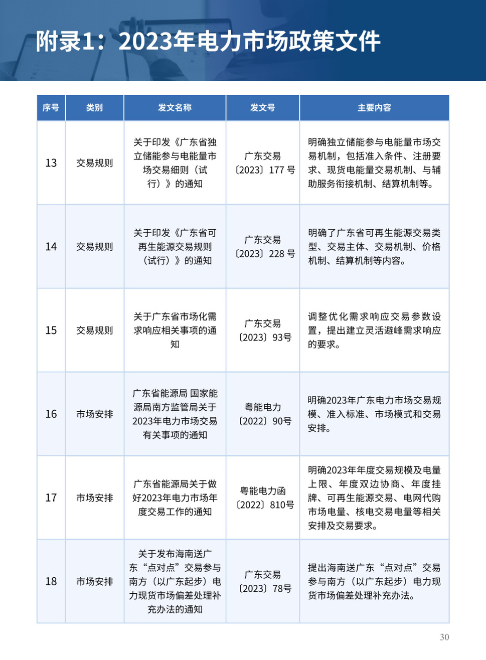 北极星售电网获悉,广东电力交易中心发布2023年广东电力市场年度报告,2023年市场建设运营取得积极进展,印发现货市场实施方案,扎实做好现货市场第三方评估,市场规范化运营迈上新台阶;重构绿电交易模式,实现发用两侧全覆盖,交易量同比翻番;打造涵盖“中长期+现货+辅助服务”完整的独立储能交易体系,引入独立储能电站试点参与交易;实现两个阶段中长期交易品种优化措施落地,完善双边协商价格统计方式;推动220KV及以上新能源全面参与现货交易,建立健全低压工商业用户入市机制;全力支撑南方区域电力市场建设,实现国内首次区域现货市场结算试运行。一年来,市场建设成效显著,全年市场规模达5754.1亿千瓦时(全国第1),占广东全社会用电量比例约68%,市场直接交易电量3141.4亿千瓦时《全国第2),同比增长5%,绿电交易电量39.7亿千瓦时(全国第5),同比增长158%,经营主体数量突破7.9万家。