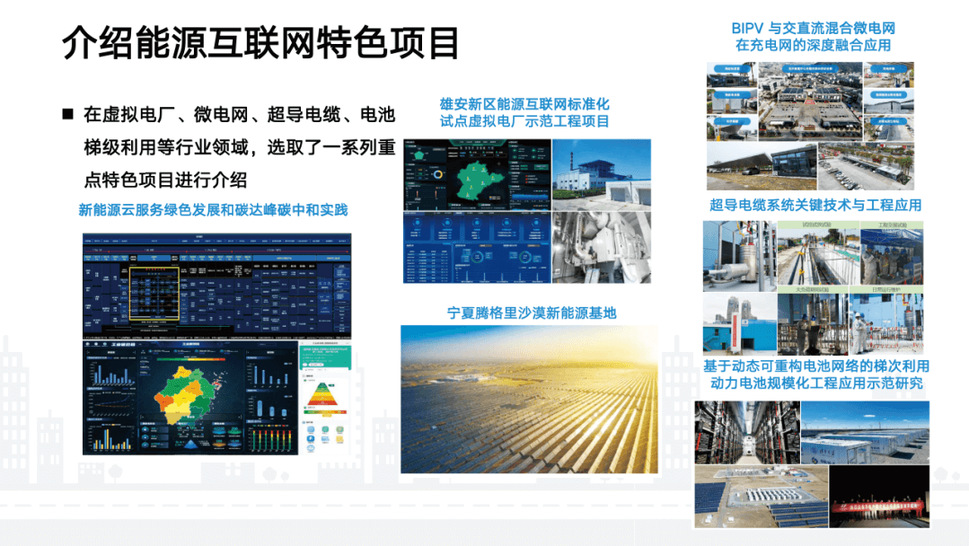 《报告》介绍了能源互联**色项目。2023年选取了5个特色项目,包括在虚拟电厂、微电网、超导电缆、电池梯级利用等行业领域,选取了一系列重点特色项目进行介绍。