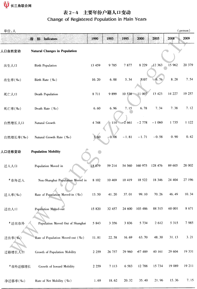 主要年份户籍人口变动