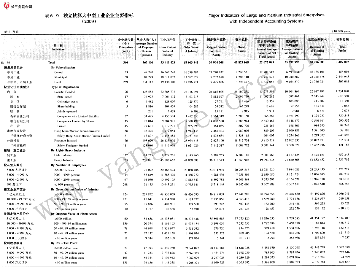 独立核算大中型工业企业主要指标(2009)