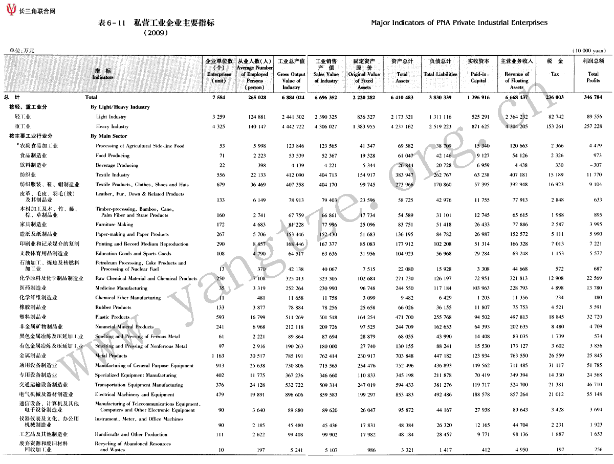 私营工业企业主要指标(2009)