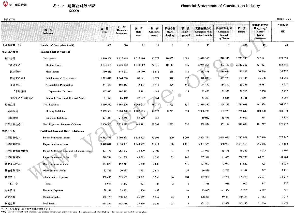 建筑业财务报表(2009)