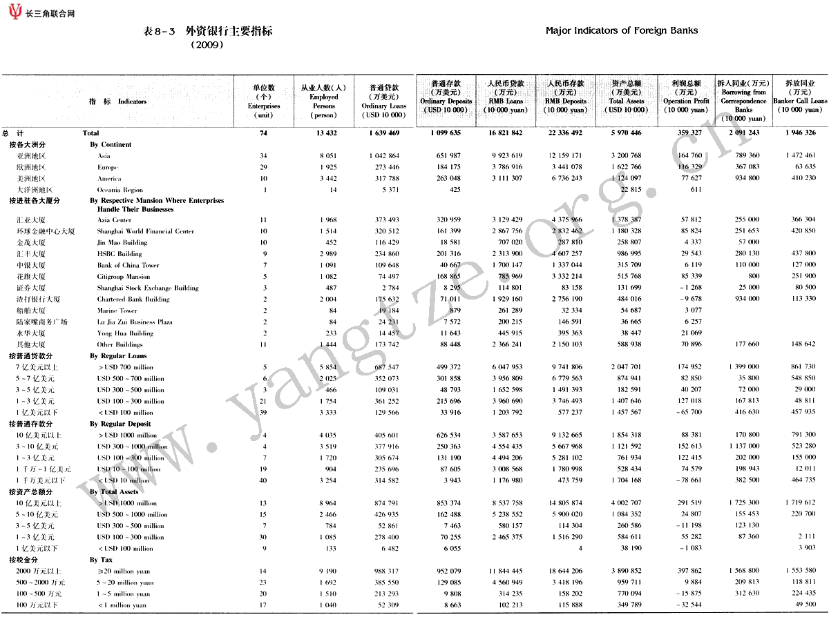 外资银行主要指标(2009)