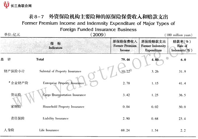外资保险机构主要险种的原保险保费收入和赔款支出(2009)