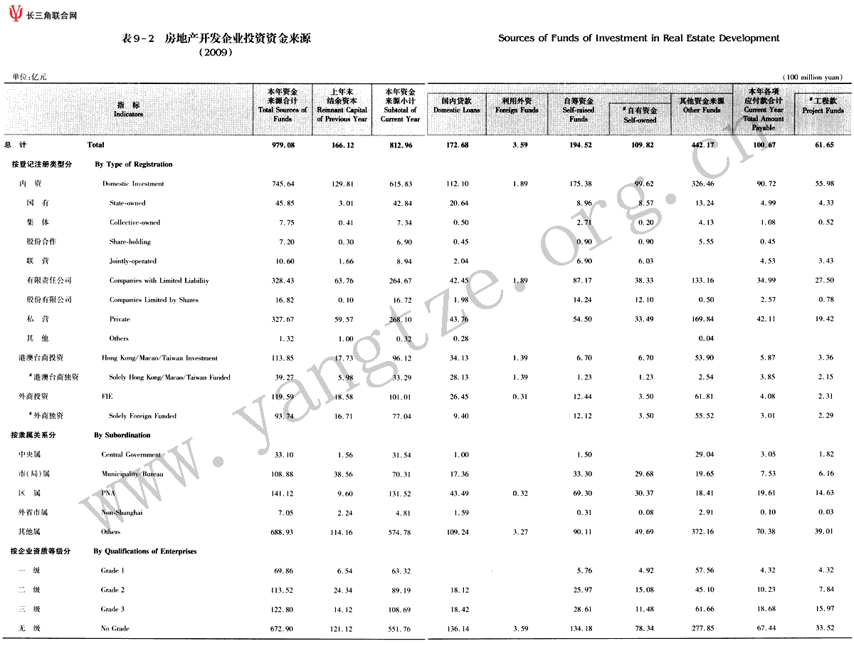 房地产开发企业投资资金来源(2009)