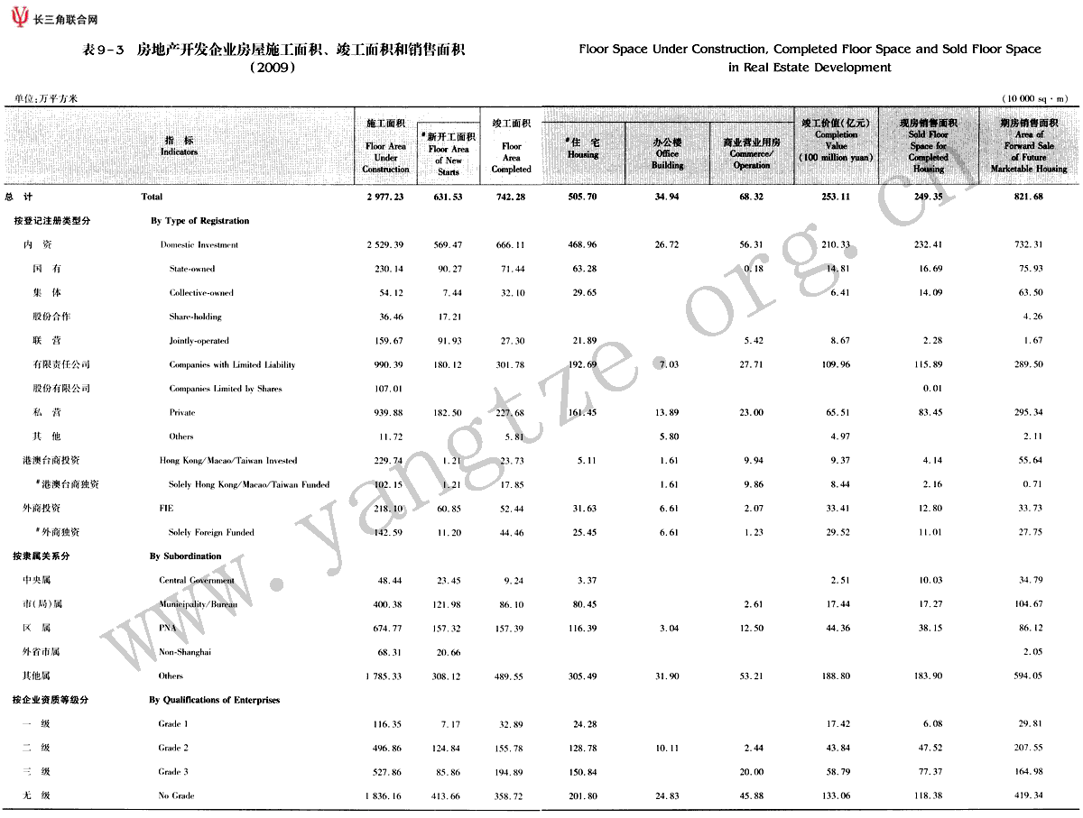 房地产开发企业房屋施工面积、竣工面积和销售面积(2009)