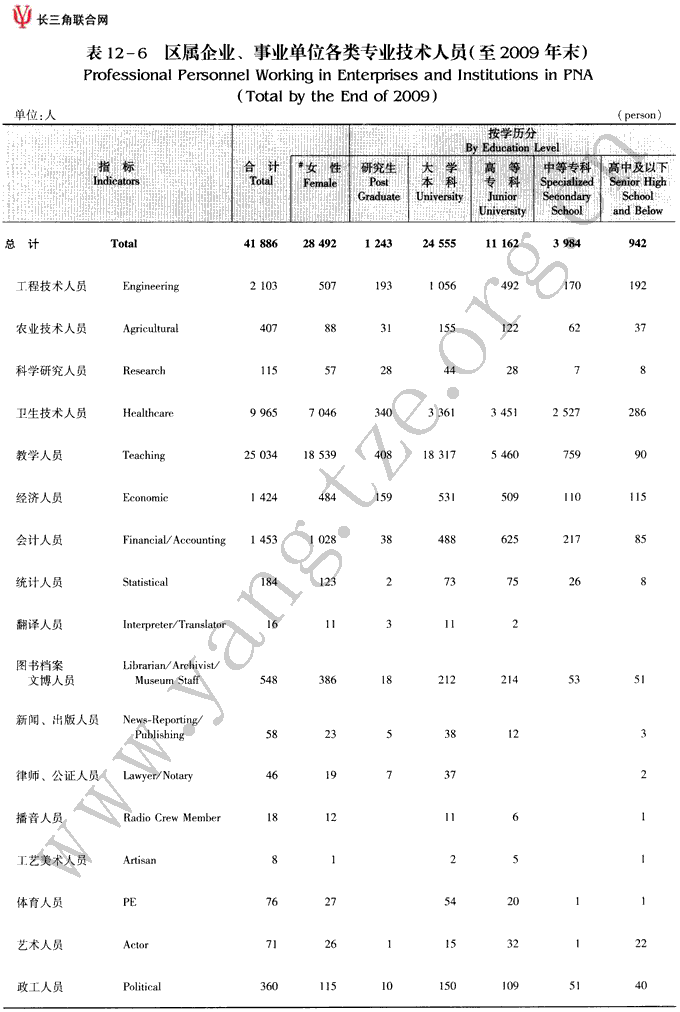 区属企业、事业单位各类专业技术人员(至2009年末)
