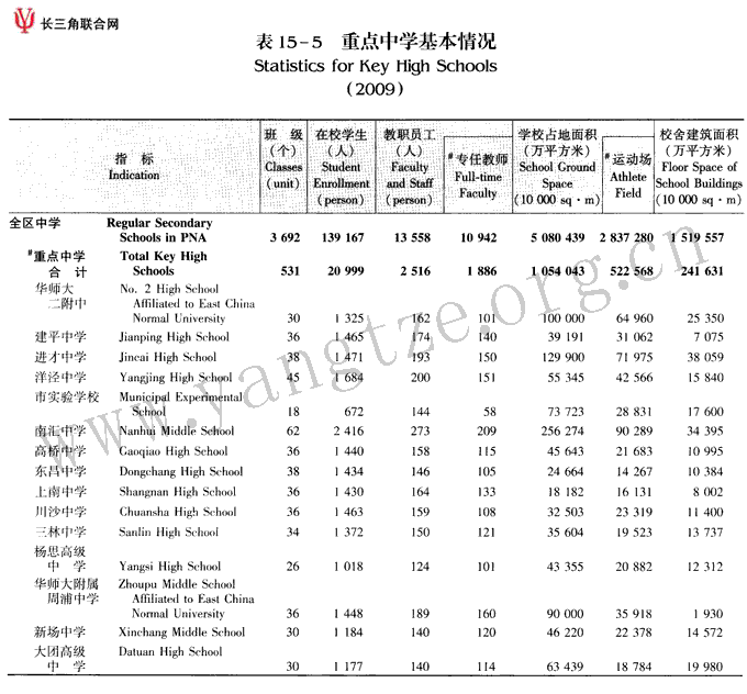当前位置:首页 > 统计年鉴 > 上海 > 浦东新区 (2010) > 教育、文化、体育、卫生 > 重点中学基本情况(2009)