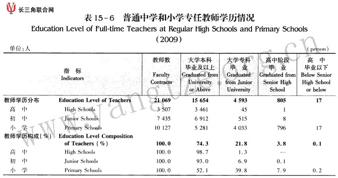 当前位置:首页 > 统计年鉴 > 上海 > 浦东新区 (2010) > 教育、文化、体育、卫生 > 普通中学和小学专任教师学历情况(2009)